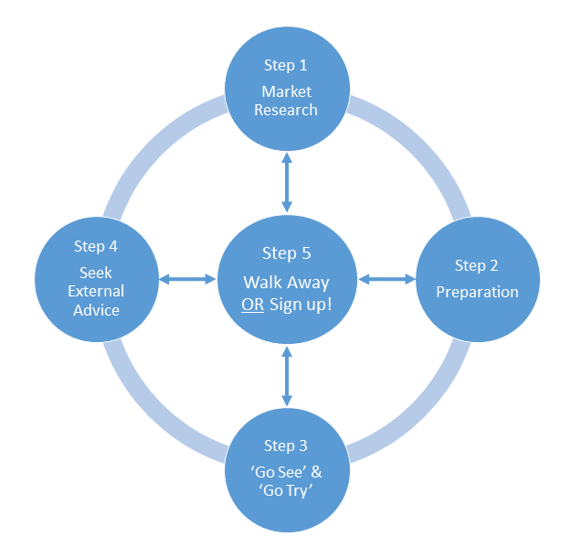 I have prepared a simple 5 step process for anyone considering making an investment in a franchise. This 5 step process is based on my own research, conversations with countless people involved in the industry and my own personal experience. Prospective Franchisees should pick and choose the elements of the 5 step process that work for them and also tailor the DD questions to use with the Franchisor based on what they think are most applicable.